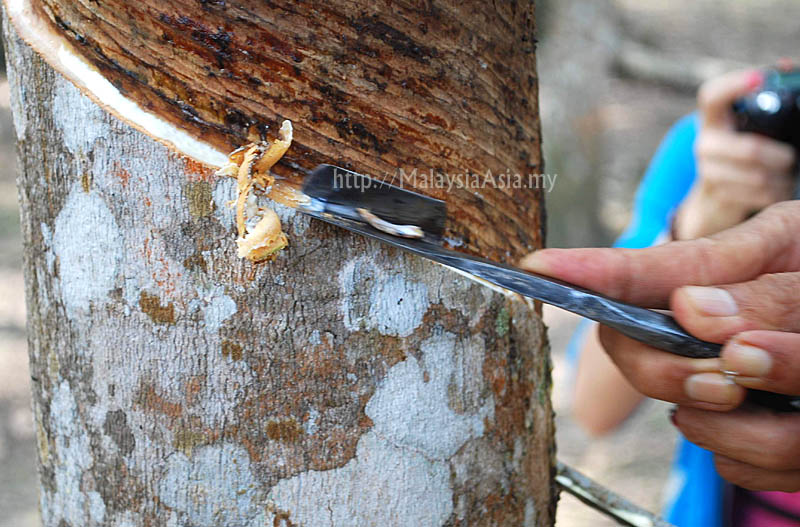 | Rubber tapping was demonstrated. |